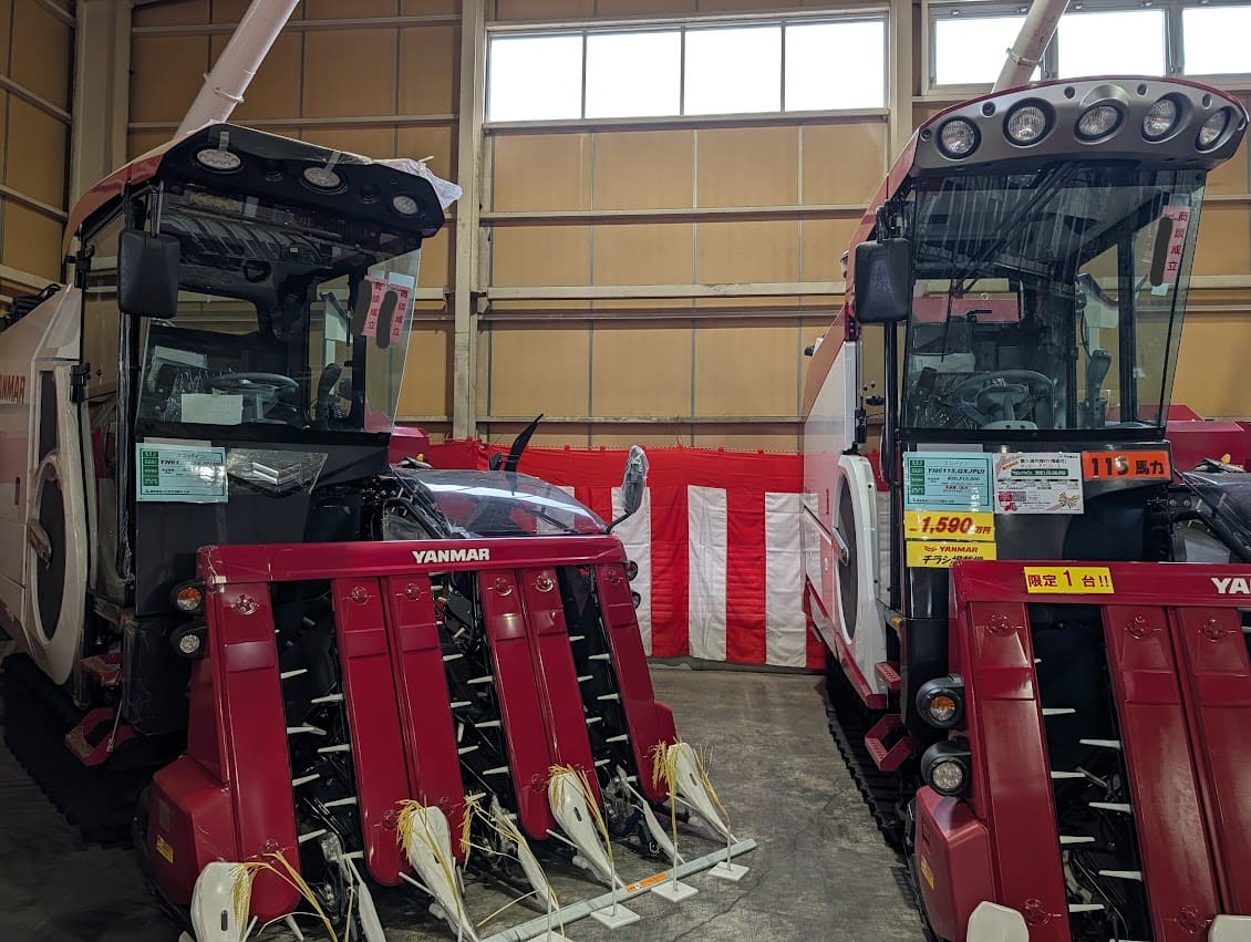 昨日からの農機具大展示会!!スゲー2200万〜のコンバインがご成約多数でビツクリ。。。