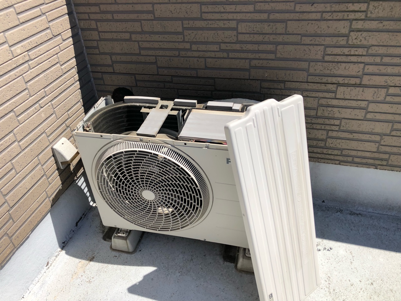 当家のエアコン室外機!表面温度が直射日光で触れられないぐらいの温度!