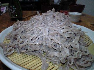 店長の僕は、お客様への配達で1日中サラダ館イエロー号の運転で、ヘトヘト!そんな時に子供の「そば打ち体験」の生そばが夕食で~す!!長さが短めでしたが、うまいでした!