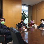 田村厚労大臣をお招きしての2(平井デジタル担当大臣と私)+1。規制改革、デジタル化について意見交換しました。 https://twitter.com/konotarogomame/status/1314151674542342144/photo/1