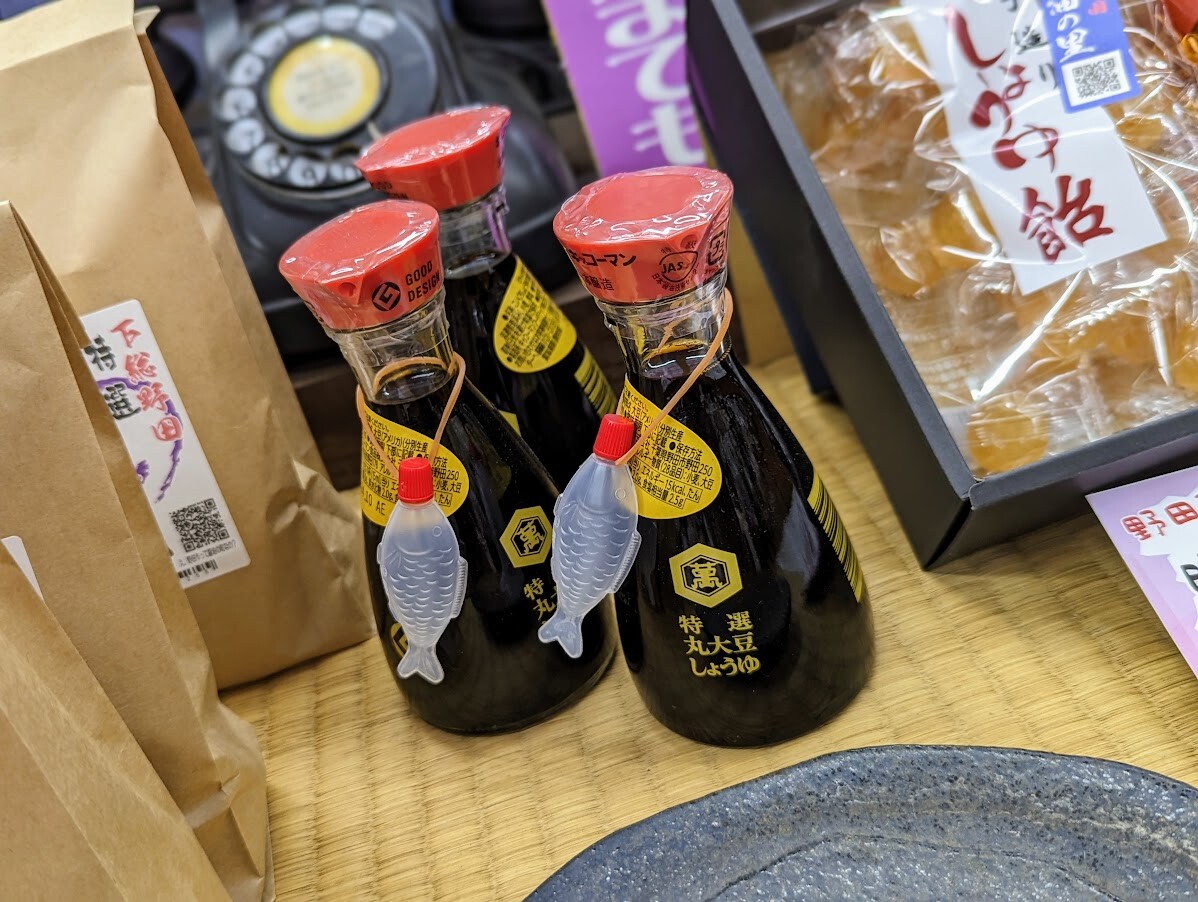 な、な、なんと!野田市民~ご婚礼にもご採用頂いてしまうという「キッコーマン醤油刺し入りの醤油」を記念し?!?「醤油戦士亀甲マン」でも登場の、しょう油入れをもれなく「キッコーマン卓上瓶入り醤油」にプレゼント。。。お魚型しょう油入れ先着200個限定~