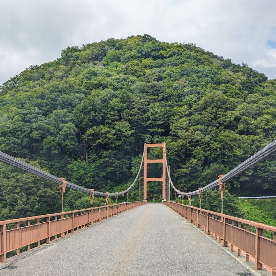 そして目的地、川俣温泉方面!!初見参!!川俣湖がお出迎えです。。。いや〜景観が素敵!!が、吊り橋の下を見たらゾクゾクするほどの高さ!!アカ〜〜〜ン!怖い。。。の時のエブリィサラダ館号!!途中も良いロケーションで、時間押せ押せだわよ〜