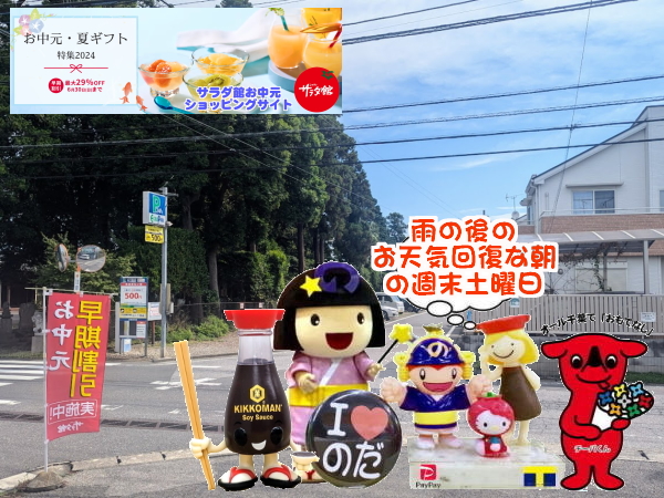 昨日の大雨から一転!青空眩しい週末土曜の朝。。。昨日は雨で気温も低くて、今日はまた夏日な予報で・・・10度ぐらい違う?!体がついていかん~ぜよ!!で、また明日は雨予報!