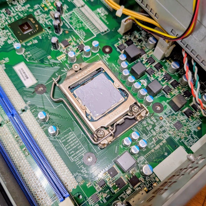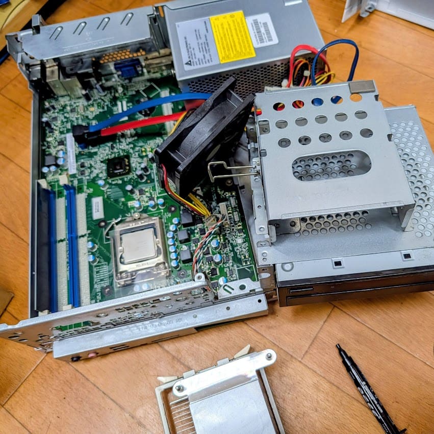ならば~自分でやってしまいましょ~不安なHDDもSSDにして熱暴走CPUも解決したい~を一挙に作業開始!!まずは分解清掃の儀。。。CPUファンを外してヒートシンクを覗いてみると、CPUグリスがカッピカピ!!これでは熱が伝わらんのではないかい。。。と言う原因究明!!