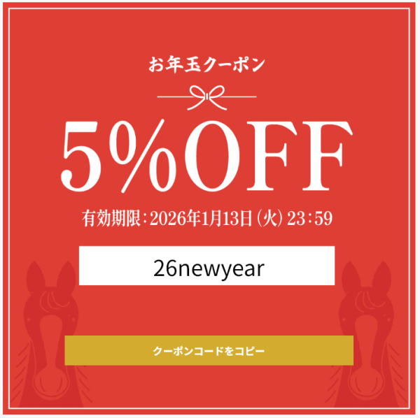 クーポンコード「26newyear」を入力すると5%OFFなお年玉!!お得にネットショッピングをご活用ください!!