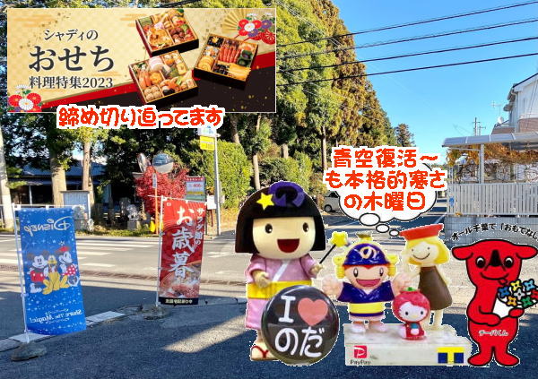 今朝も冷え込んだ~野田市の朝!!スマホを覗くと朝6時半でー3℃~だそうで・・・布団から出るのも勇気がいる気温。。。昨日は重い物を自宅へ運ぶので車での帰宅&今朝は車での通勤!なので、徒歩は3日間お休み。。。な火曜日の野田市!!