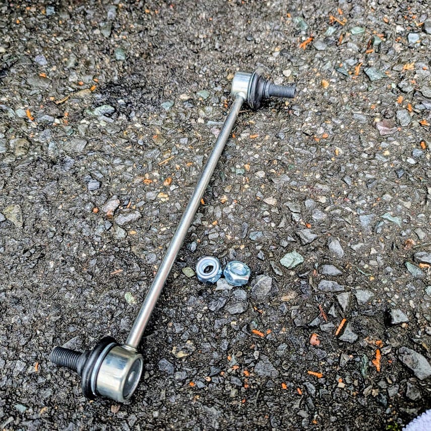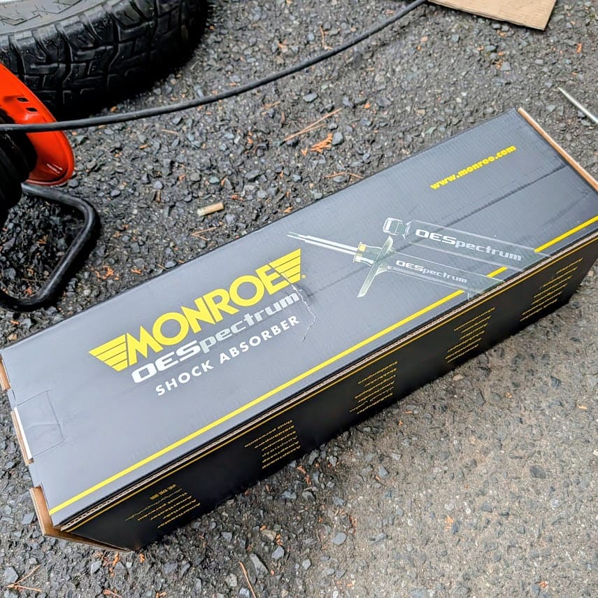 旧スタビライザーリンクのグリスが出ちゃってたし!!これは車検通らない奴や~新品買っといてよかった~すべての配線やブレーキホースも元通りに戻して、後はトルクレンチで、締め付けてアッパーマウントのナットもトルクレンチで増し締め!!タイヤを装着し完成~💦モンローのステッカーがカッコええ~でないかい。。。