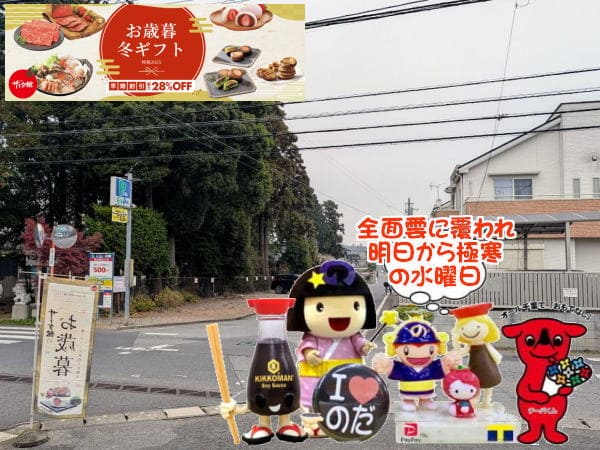 今朝も、一面雲が~で、早朝は霧っぽい風景が~な12月上旬の野田市の水曜日。。。お歳暮シーズンも真っ最中~で、昨日は師走の走りまくりな日~で、今日は包装三昧&配達業務の~~~