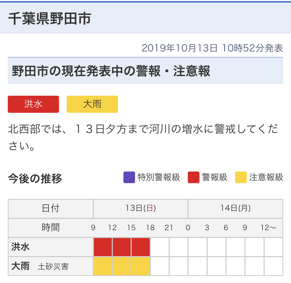 洪水警報は引き続き発令中です。十分に気をつけて行動してください。