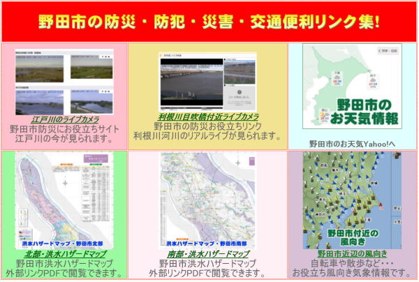 江戸川・利根川ライブカメラ、風向き、ハザードマップ、電車・停電情報など位置情報