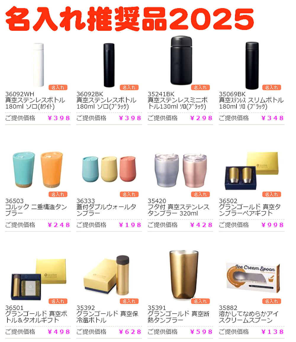 各種イベントや記念品に役に立つ名入れプリントの出来るノベルティギフトが豊富にご用意!!