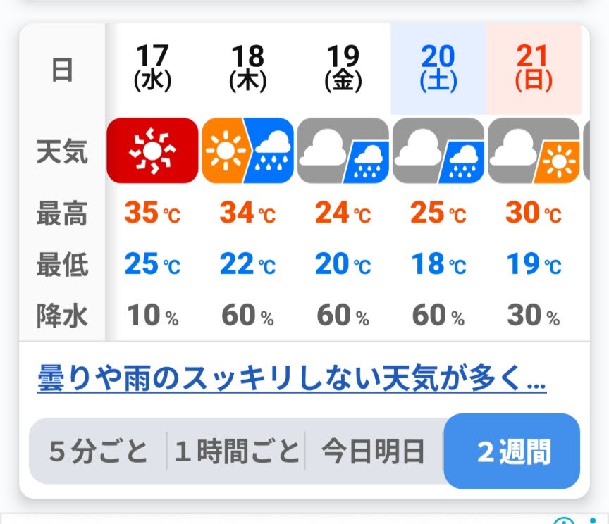 明日からは雨マークや曇りマークが並びます。。。暑さ寒さも彼岸まで・・・な昔ながらの言葉通りに!!どうやらお彼岸には、涼しくなりそうな予報!!の野田市の水曜日~