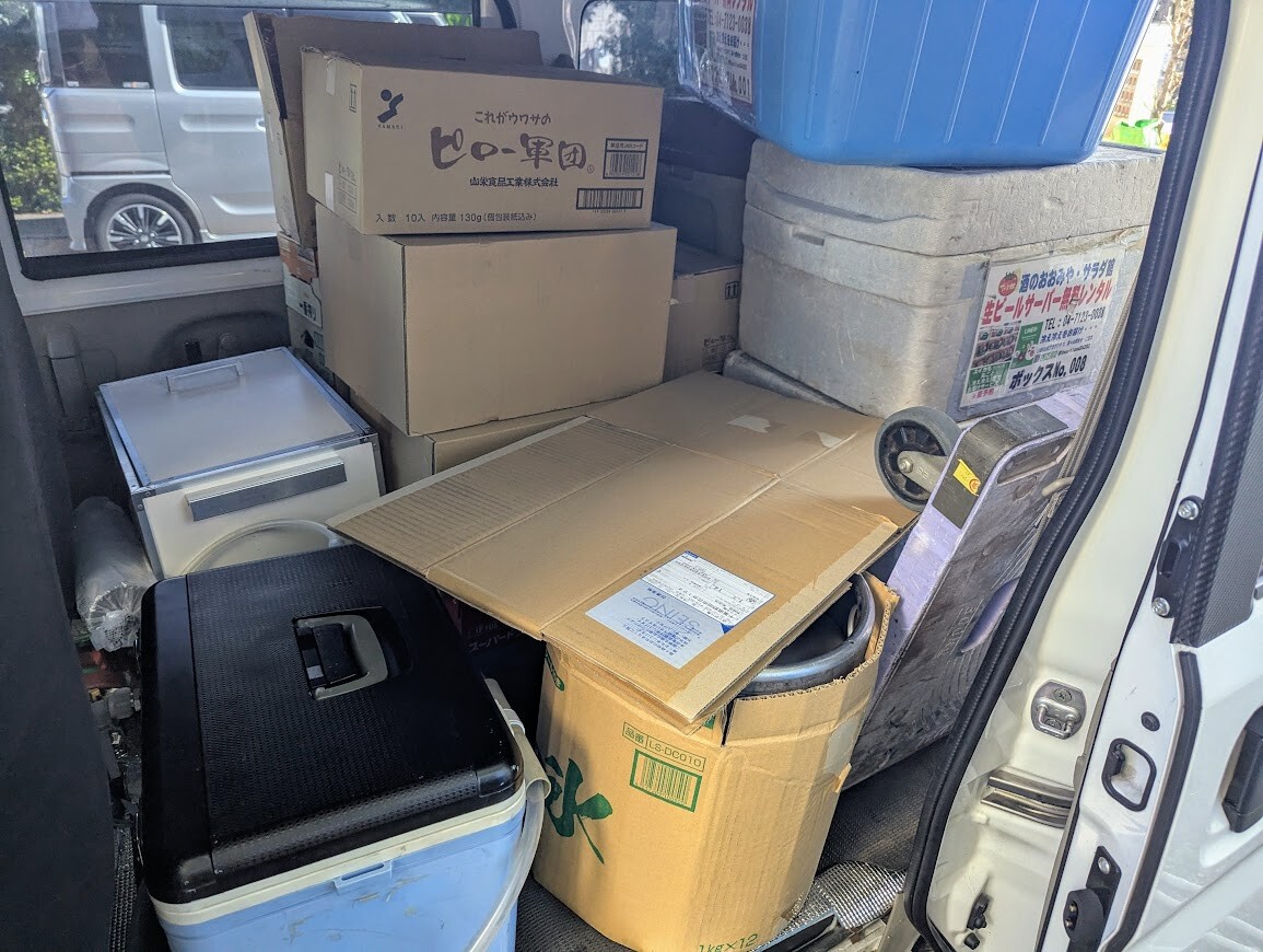 第一発目は、越谷市から・・・祭礼のお酒やおつまみセットなどを!!更に業務用クーラーボックス・どぶ漬けプールの貸し出しも。。。これで、猛暑だろうが酷暑だろうが、キンキンを維持できます!!初めての場所でしたが~スムーズに納品完了し!!次なる場所へ・・・