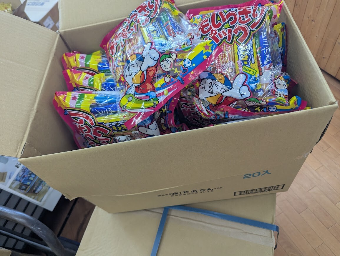 3連休最終日~もお祭りのお仕事から~で、今日は子供たち用のお菓子の詰合せも!!大人から子供までな夏休みは行ってのお祭り騒ぎな3日間!!もちろん、大人用ビールやお茶などは2℃まで冷やして~目の覚める飲料をお届け・配達~