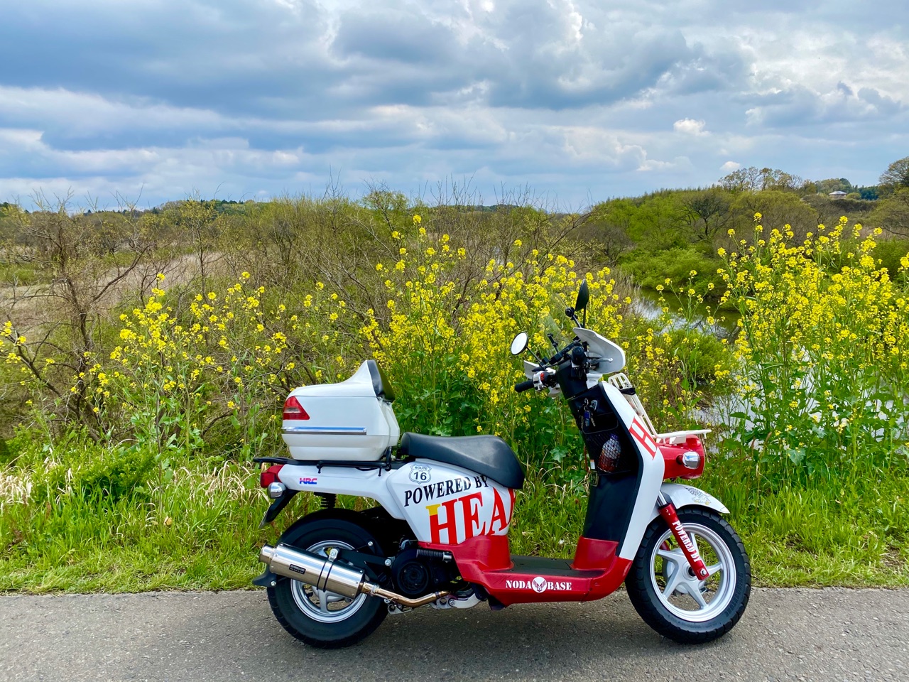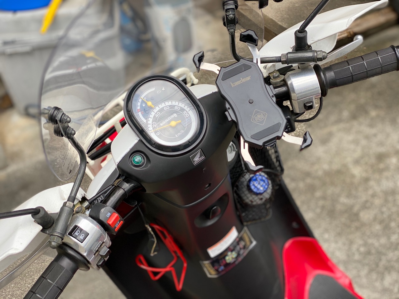 スマホホルダーからの配線をバッテリーに直付ベンリィ…